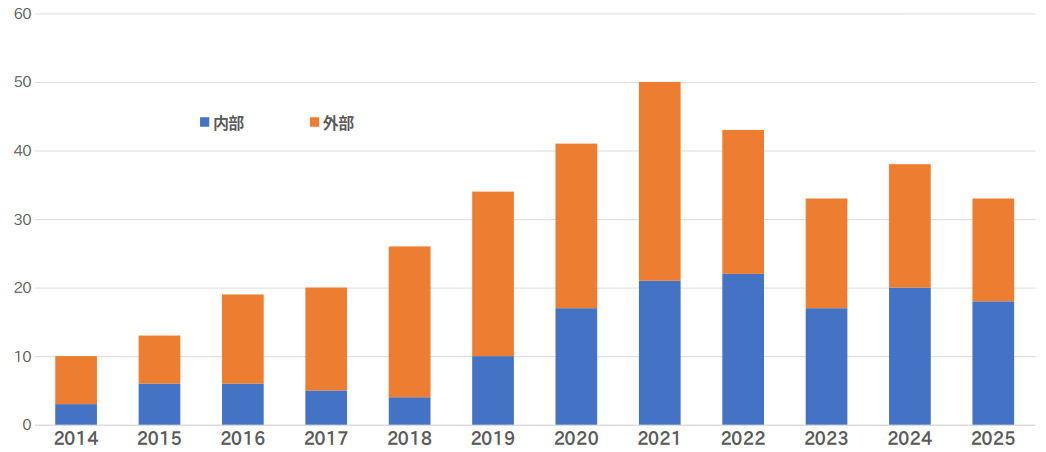 1つの研究プロジェクトで3カ月以上間隔を空けて2回利用した場合は2件と数えます。(2020~2022年度)